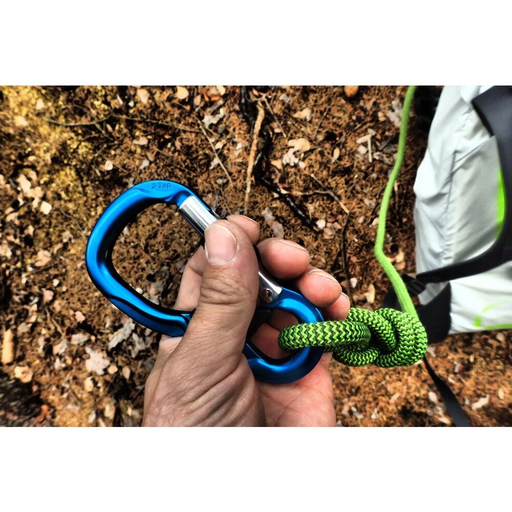 Popularny karabinek HMS ze zintegrowaną poprzeczką, która zapobiega przekręcaniu się karabinka do niepożądanej pozycji podczas mocowania.