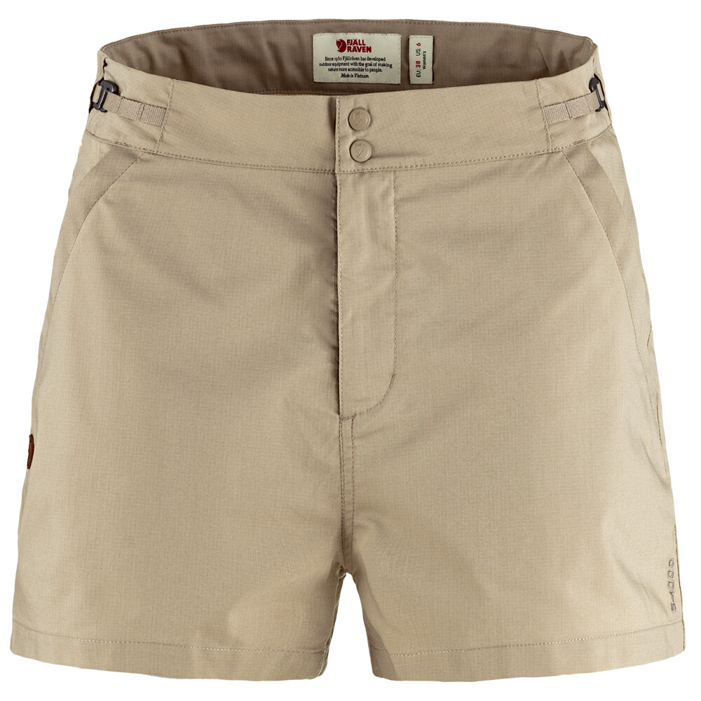 Damskie funkcjonalne szorty Fjällräven z oddychającego materiału, idealne do aktywności na świeżym powietrzu w gorące letnie dni. Dopasowany krój z wyższym pasem, który można ściągnąć sznurkiem.