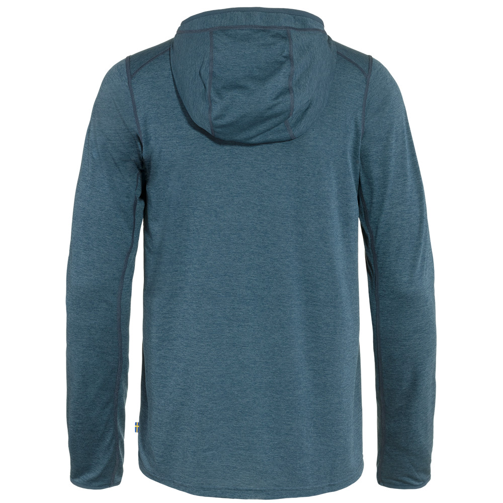Męska koszulka Abisko Sun-hoodie marki Fjällräven jest przeznaczona do trekkingu w ciepłych warunkach.