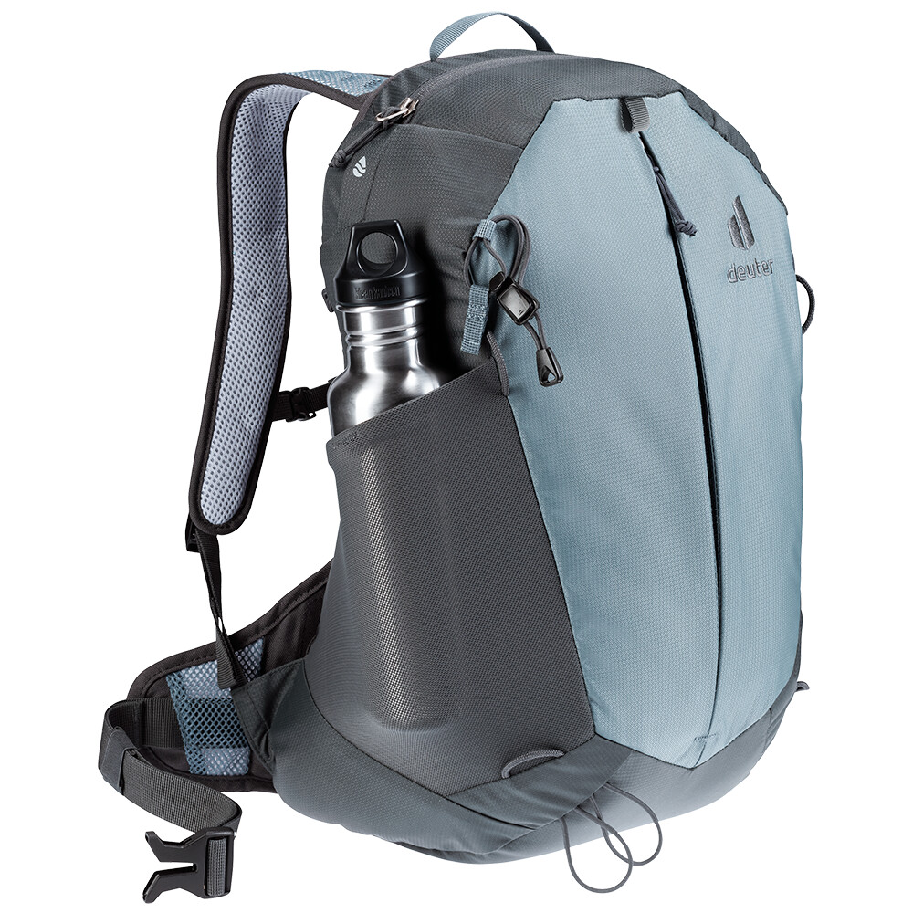 Przestronna komora główna AC Lite 15 SL z łatwością pomieści wszystkie niezbędne rzeczy. Oprócz centralnej kieszeni, posiada poręczną kieszeń na telefon komórkowy lub inne cenne przedmioty i elektronikę. Po bokach znajdują się siatkowe kieszenie na butelki z wodą, a pętle umożliwiają przymocowanie kasku, kijków trekkingowych lub kurtki. Na pasku na ramię znajduje się poręczne mocowanie na okulary. Te przemyślane detale sprawiają, że AC Lite 15 SL jest idealnym towarzyszem na wszelkiego rodzaju wędrówki.