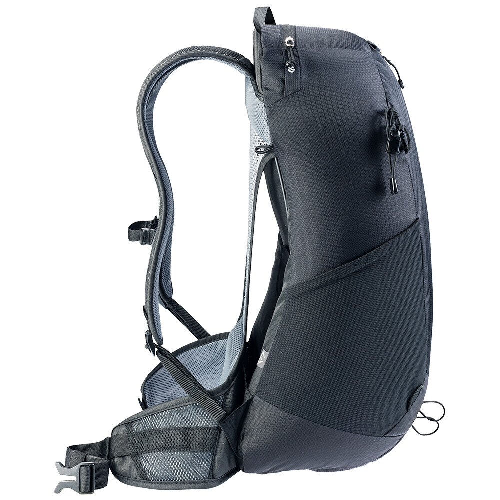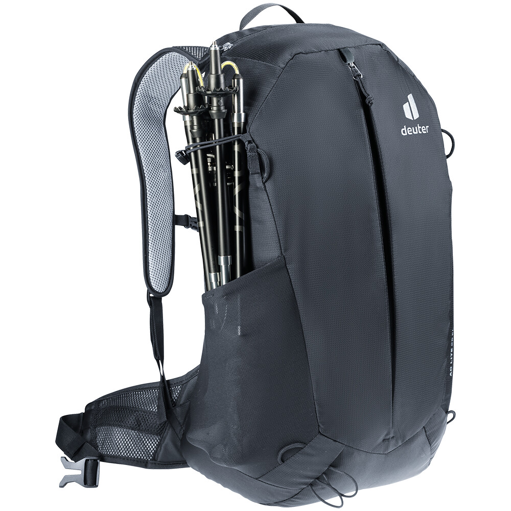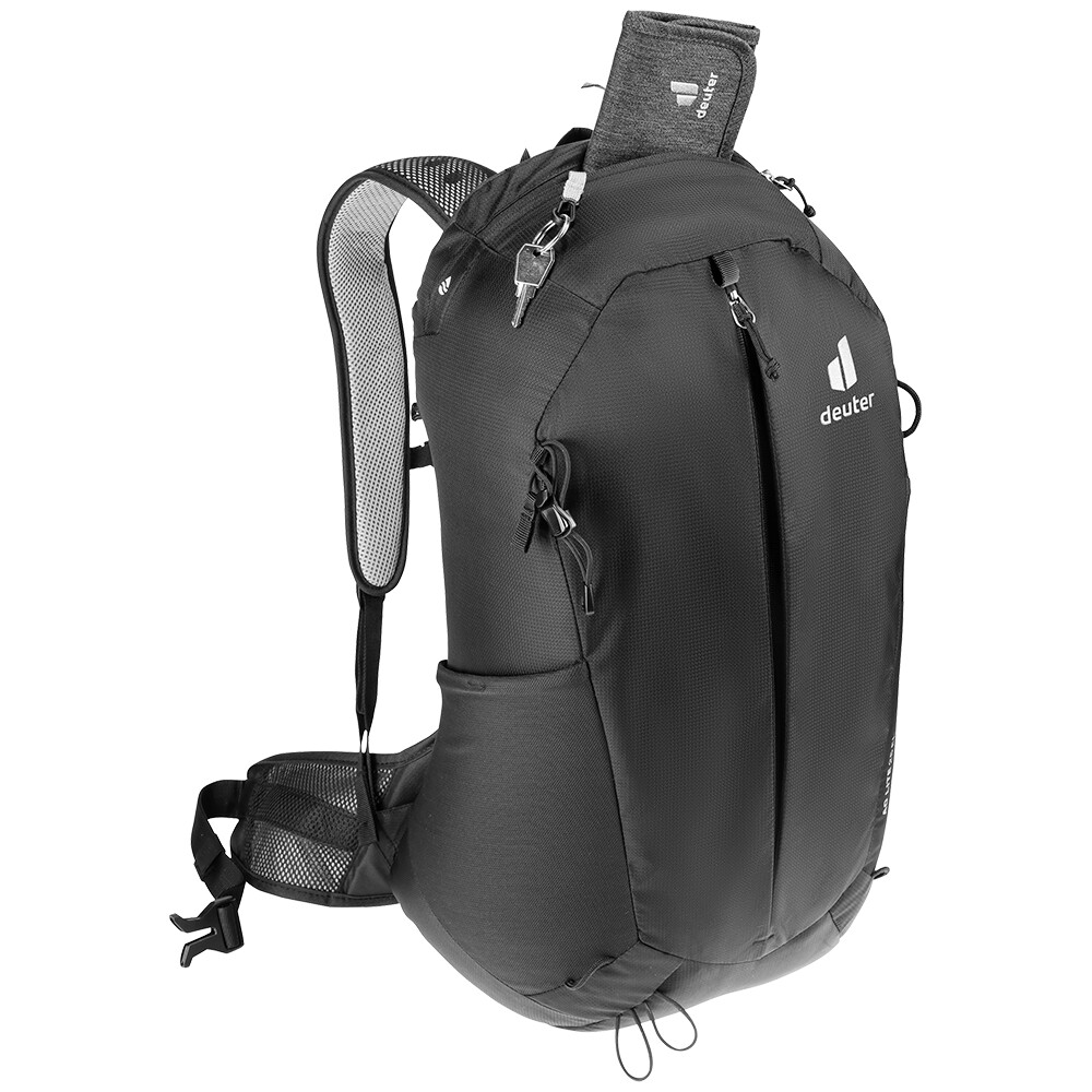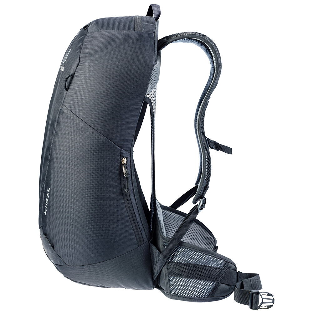 Przestronna komora główna AC Lite 25 EL z łatwością pomieści wszystkie niezbędne rzeczy. Oprócz centralnej kieszeni, posiada poręczną kieszeń na telefon komórkowy lub inne cenne przedmioty i elektronikę. Po bokach znajdują się siatkowe kieszenie na butelki z wodą, a pętle umożliwiają przymocowanie kasku, kijków trekkingowych lub kurtki. Na pasku na ramię znajduje się poręczne mocowanie na okulary. Te przemyślane detale sprawiają, że AC Lite 25 EL jest idealnym towarzyszem na wszelkiego rodzaju wędrówki.