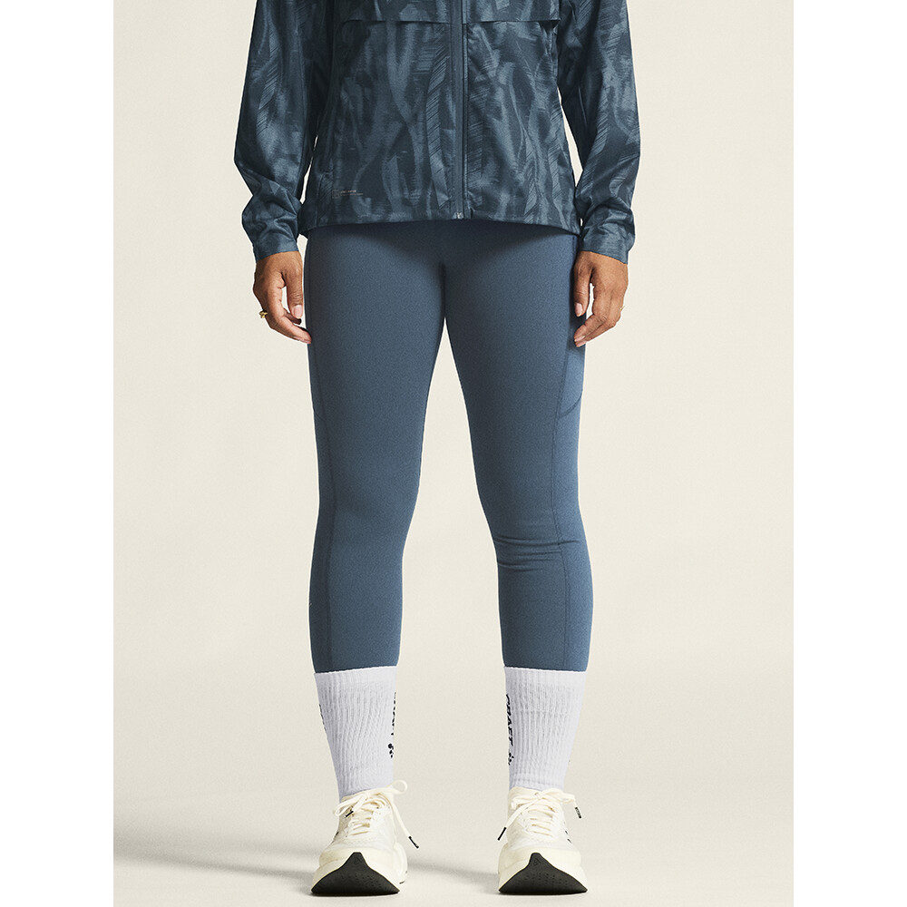 Wysoce funkcjonalne damskie legginsy treningowe ADV Essence Warm Tights 3 szwedzkiej firmy Craft na chłodne dni. Wykonane są z materiału pochodzącego z recyklingu, który jest rozciągliwy i ciepły dzięki wewnętrznemu szczotkowanemu polarowi.