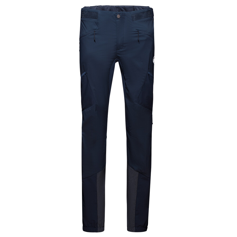 Męskie spodnie softshellowe Mammut to idealny wybór dla aktywnych mężczyzn. Wysoce elastyczny materiał softshell jest wiatroszczelny i oddychający. Spodnie mają regulowany pas, wiele kieszeni na suwak i wzmocnione kolana.