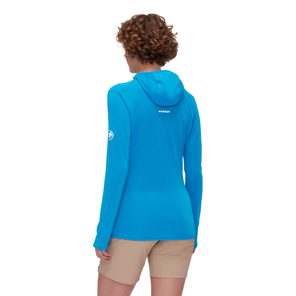 Bluza została wykonana z funkcjonalnego materiału Polartec® Power Grid. Dzięki temu bluza jest wysoce oddychająca, szybkoschnąca, elastyczna i jednocześnie izolująca. Damski sportowy krój z długimi rękawami idealnie pasuje. Dopasowany kaptur nadaje się również do użytku z kaskiem. Zapinana na zamek kieszeń na piersi zapewnia bezpieczeństwo kosztowności. Płaskie szwy minimalizują powstawanie nieprzyjemnych pęcherzy.