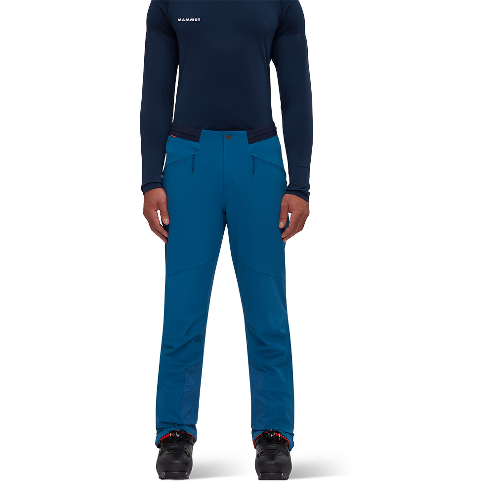 Męskie techniczne spodnie Mammut ochronią Cię podczas złej pogody. Spodnie są wodoodporne, oddychające i wiatroszczelne. Sportowy krój zapewnia swobodę ruchów. Spodnie mają wentylację na zamek błyskawiczny, kieszenie na zamek błyskawiczny, zintegrowaną kieszeń na telefon, regulowaną szerokość nogawek, wzmocnione nogawki i mankiety przeciwśnieżne.