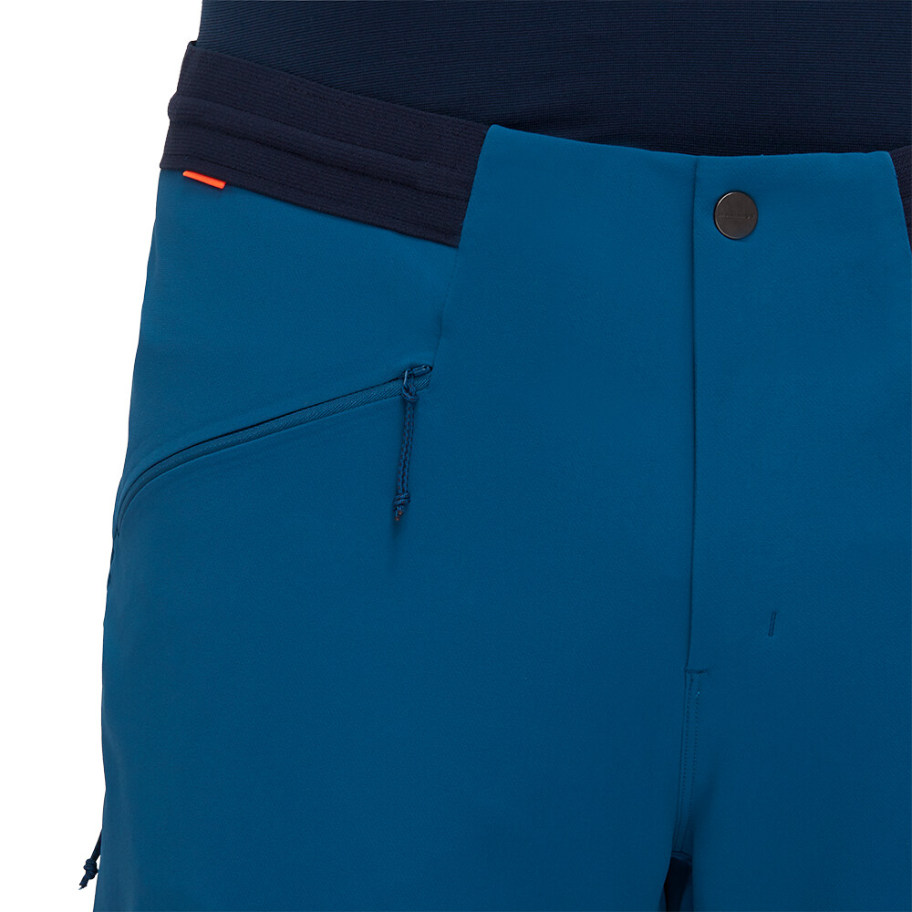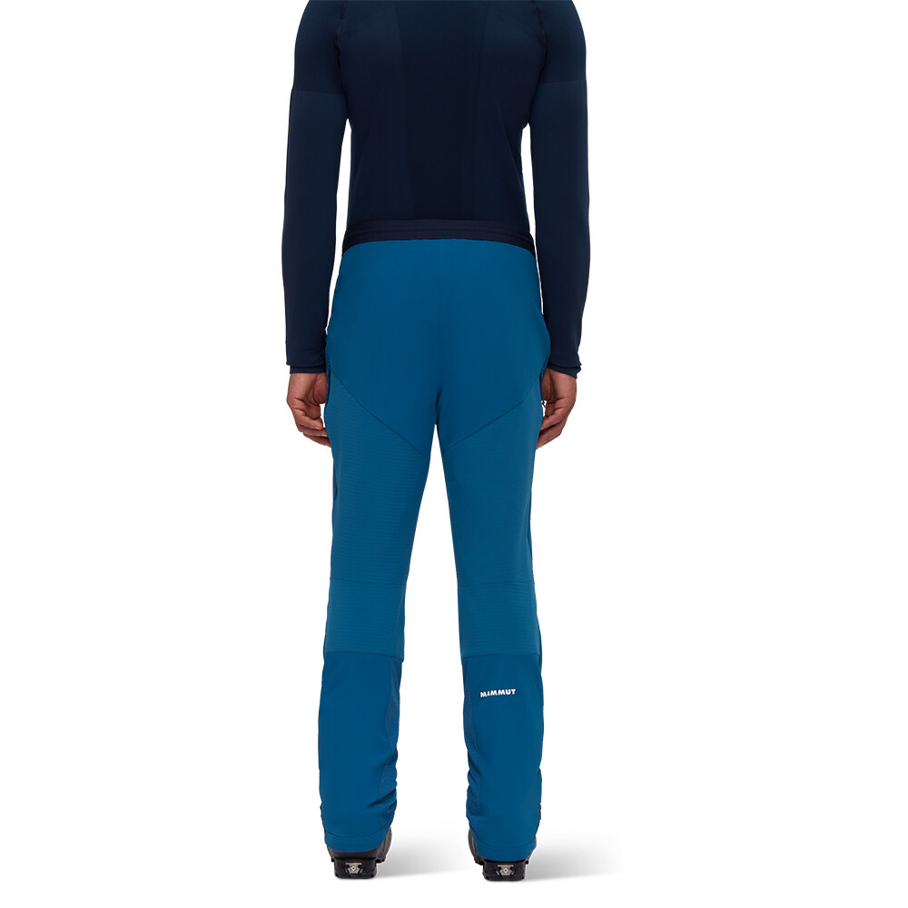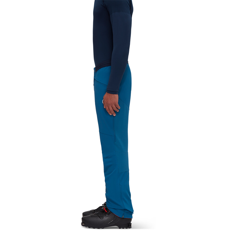 Męskie funkcjonalne spodnie Mammut zapewniają swobodę ruchów, ochronę podczas wietrznej pogody i oddychalność. Sportowe spodnie mają kieszenie, do których można uzyskać dostęp za pomocą siedzenia, wzmocnione obszycie nogawek i praktyczny haczyk na buty.