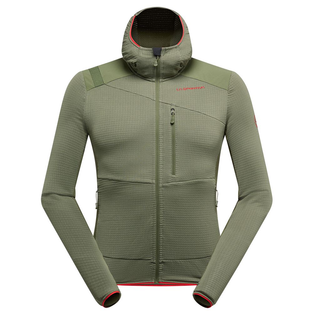 Bluza wykonana jest z materiału Polartec® Power Grid™, który jest izolujący, oddychający i elastyczny. Siatkowe panele pod pachami dodatkowo zwiększają odprowadzanie wilgoci z dala od ciała. Wzmocnione, wytrzymałe ramiona są szczególnie przydatne podczas użytkowania z plecakiem. Elastyczny, ergonomicznie ukształtowany kaptur jest również idealny pod kask. Rękawy posiadają otwory na kciuki. Zapinana na zamek kieszeń na piersi pomieści cenne przedmioty. Dwie zapinane na zamek kieszenie są doskonale dostępne, nawet gdy masz na sobie siodełko wspinaczkowe lub zapięty pas biodrowy plecaka.