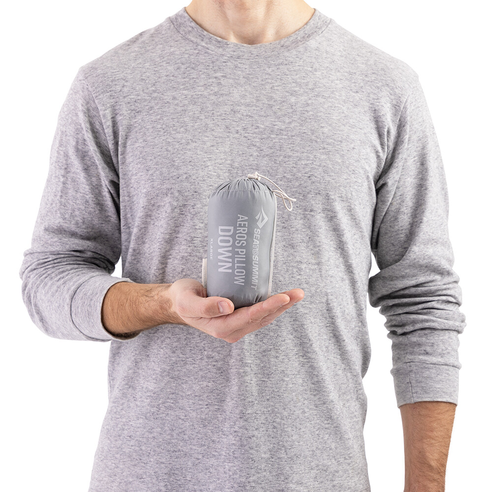 Poduszka kempingowa Sea to Summit łączy w sobie dwa najlżejsze materiały - powietrze i pierze. Poduszka jest nadmuchiwana, a jej górna warstwa wypełniona jest pierzem. Dzięki temu jest bardzo lekka i niewielkich rozmiarów po spakowaniu, więc bez żalu można ją spakować do plecaka na wielodniową wędrówkę po górach. Wystarczy kilka wdechów, aby napompować poduszkę i dostosować pożądaną twardość za pomocą wielofunkcyjnego zaworu.