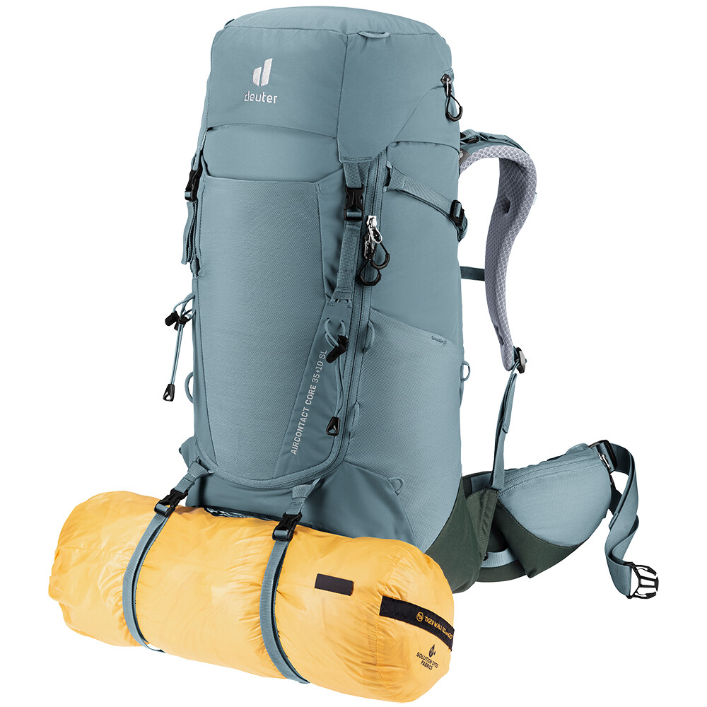 Damski plecak trekkingowy Aircontact Core 35 10 SL marki deuter to wszechstronny i wygodny plecak trekkingowy, który docenisz w górach i podczas wędrówek po całym świecie. Z łatwością zabierzesz go na pokład samolotu i równie wygodnie będzie Ci towarzyszył w terenie. Skrót SL w tym przypadku oznacza wersję Slim line. Została stworzona z myślą o szczuplejszych i krótszych plecach kobiet, gdyż klasyczne kroje mogą zsuwać się z ramion.