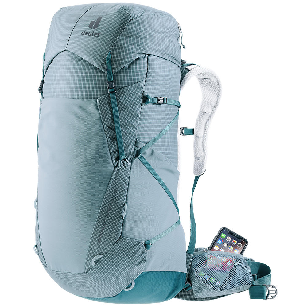 Lekki plecak turystyczny z jedną główną kieszenią z dostępem z przodu i górną zwijaną pokrywą. Posiada siatkowe kieszenie na szelkach i pasie biodrowym. Kompatybilny z systemem hydrovac, z możliwością zamocowania kijków.
