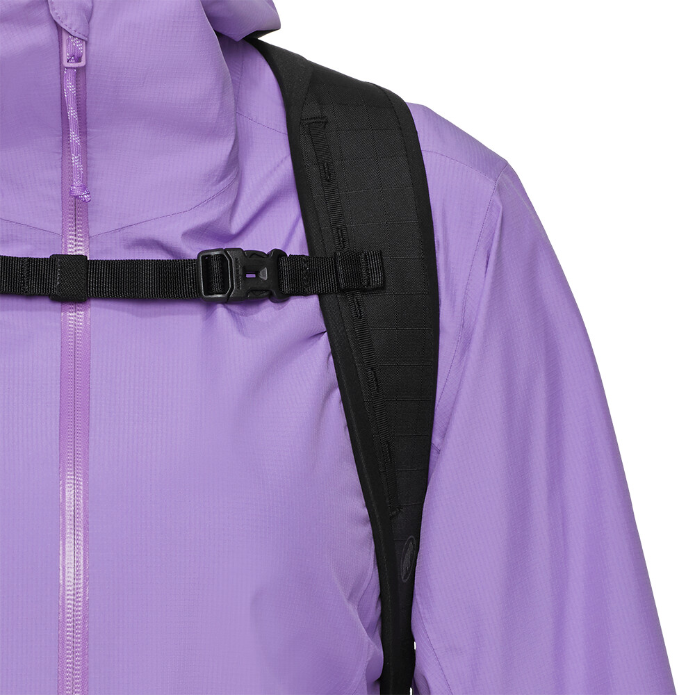 Plecak Alto 18 marki Mammut do codziennego noszenia, inspirowany plecakami turystycznymi Mammut. Wykonany jest z wytrzymałego materiału ripstop, który chroni sprzęt przed niewielkim deszczem. Posiada jedną główną kieszeń zapinaną na zamek, boczną kieszeń na butelkę i wyjmowaną kieszeń z siatki z przodu, aby schować kurtkę, kask rowerowy i inny sprzęt w razie potrzeby. Plecak ma zarówno pas piersiowy, jak i biodrowy i jest wygodną opcją dla tych, którzy lubią jeździć na rowerze po mieście.