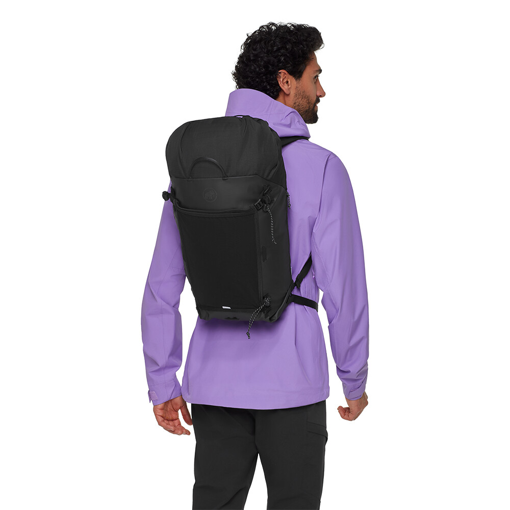 Plecak Alto 24 marki Mammut do codziennego noszenia, inspirowany plecakami turystycznymi Mammut. Wykonany jest z wytrzymałego materiału ripstop, który chroni sprzęt przed niewielkim deszczem. Posiada jedną główną kieszeń zapinaną na zamek, boczną kieszeń na butelkę i wyjmowaną kieszeń z siatki z przodu, aby schować kurtkę, kask rowerowy i inny sprzęt w razie potrzeby. Plecak ma zarówno pas piersiowy, jak i biodrowy i jest wygodną opcją dla tych, którzy lubią jeździć na rowerze po mieście.