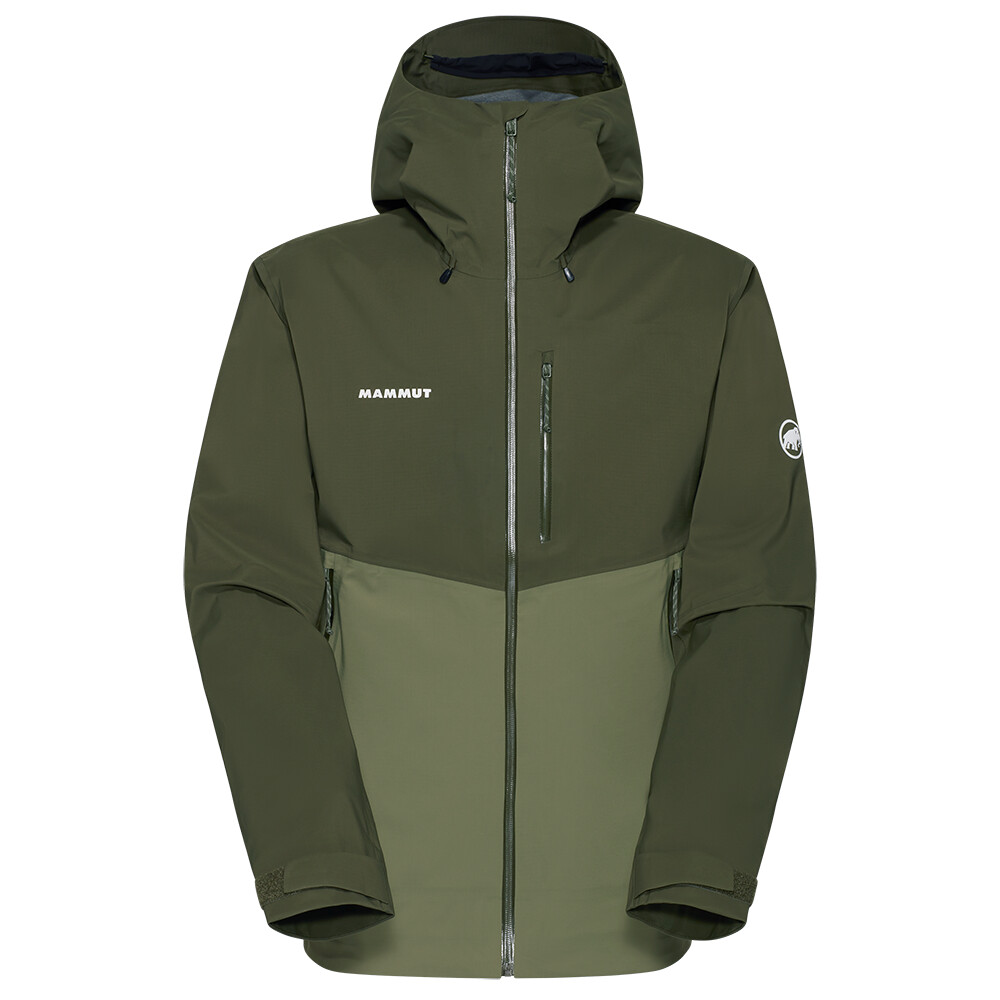 3-warstwowy materiał Mammut DRYtechnology™ Pro jest wytrzymały, wodoodporny i wiatroszczelny, a jego wodoodporność wynosi 20 000 mm słupa wody . Kaptur jest kompatybilny z kaskiem. Kieszenie są łatwo dostępne nawet podczas noszenia uprzęży wspinaczkowej lub z zapiętym pasem biodrowym plecaka. Zapinana na zamek wentylacja w pachach pozwala na regulację temperatury.