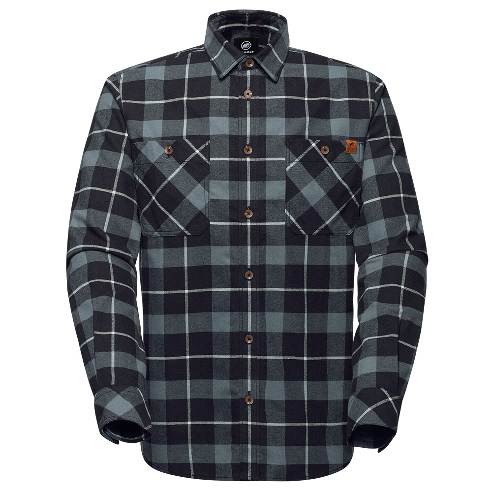 Męska koszula flanelowa marki Mammut zapewnia optymalne właściwości termoregulacyjne. Koszula wykonana jest z konopi i poliestru pochodzącego z recyklingu. Koszula ma długie rękawy, dwie kieszenie na piersi z patką i regulowane mankiety rękawów.