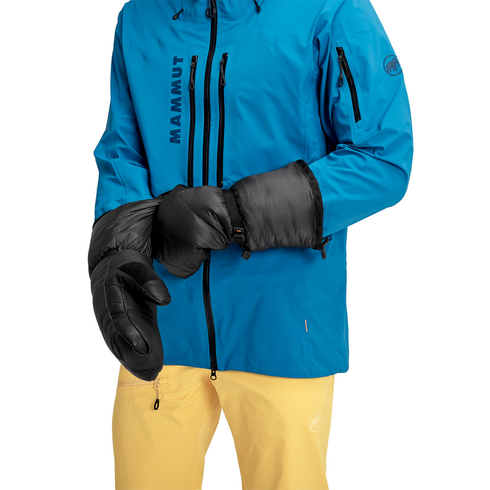 Zimowe rękawice Mammut wykonane z wiatroszczelnego materiału zapewnią dłoniom przyjemne ciepło dzięki puchowej i syntetycznej izolacji. Ergonomiczny krój jest idealnie dopasowany. Skórzana dłoń wytrzymuje dłużej. Rękawice są zapinane na rzep w nadgarstku.