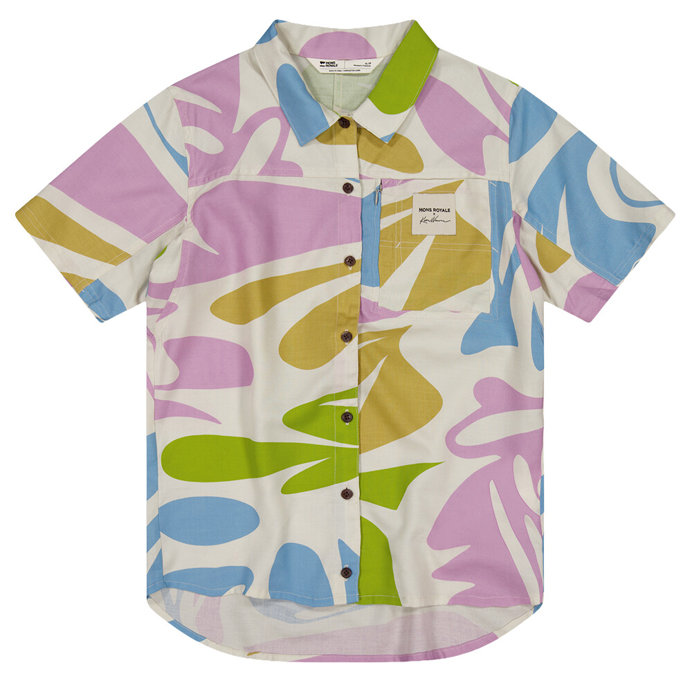Limitowana edycja "Nature's Odyssey" AT Merino Short Sleeve Shirt Women od Mons Royale wnosi do Twojej garderoby energię i kolor południowoafrykańskiej artystki Kim van Vuuren. Ta damska koszulka z krótkim rękawem AT Merino od Mons Royale to nie tylko wizualny klejnot, ale przede wszystkim wysokiej jakości odzież, która wytrzyma każdą letnią misję. Wełna merynosowa zapewnia komfort w kontakcie ze skórą, pomaga regulować temperaturę i utrzymuje świeżość nawet podczas całodziennego noszenia. Koszulka jest lekka, dyskretna i łatwa do łączenia z innymi elementami garderoby.