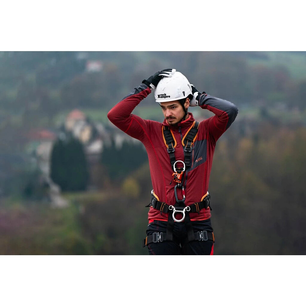 Uprząż na całe ciało od Rock Empire, zaprojektowana do pracy i wyposażona w rewolucyjny system regulacji talii. Obejmuje on cały zakres rozmiarów. Paski naramienne można odpiąć.