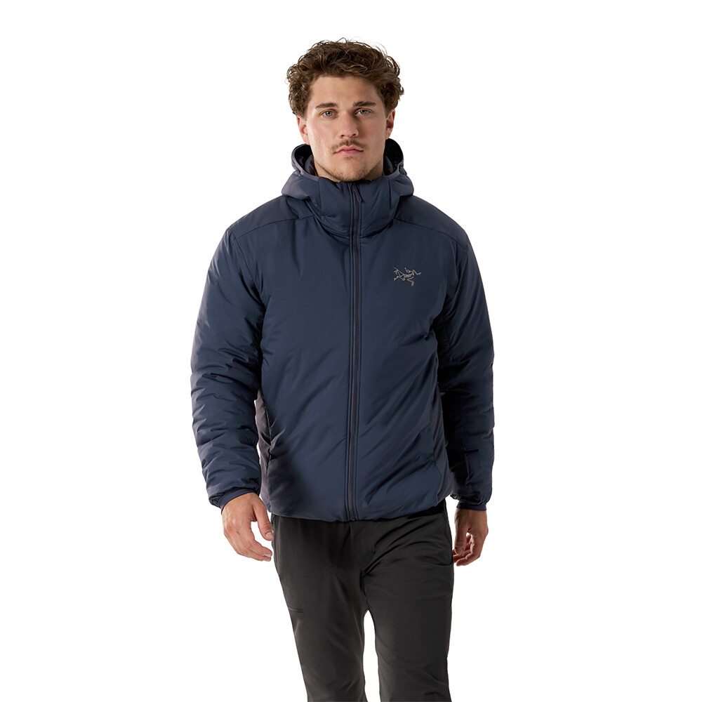 Ulepszona wersja popularnej ocieplanej kurtki Atom SV Hoody Men jest wykonana z wiatroszczelnego materiału Tyono™ 30 z hydrofobowym wykończeniem DWR. Miękka ocieplina Coreloft™ 120 jest oddychająca, bardzo ciepła i sprawdza się nawet po zamoczeniu. Oddychające, elastyczne panele boczne zapewniają termoregulację, zapobiegając przegrzaniu bez utraty ciepła. Dobrze dopasowany kaptur StormHood™ jest kompatybilny z kaskiem i ma trzypunktową regulację. Na rękawach znajdują się elastyczne mankiety.