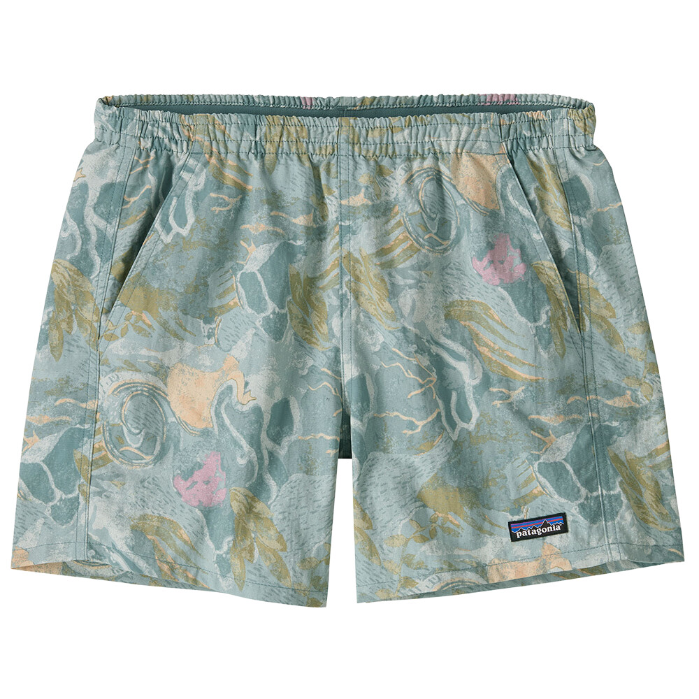 Wielofunkcyjne szorty Baggies Shorts Women amerykańskiej marki Patagonia to elegancki element garderoby. Zostały wykonane z szybkoschnącego materiału NetPlus®, nylonu pochodzącego w 100% z recyklingu z wykończeniem DWR. Materiał ten jest produktem recyklingu sieci rybackich, pomagając Patagonii zmniejszyć zanieczyszczenie oceanów plastikiem. Spodenki mają elastyczny pas, a ich rozmiar można regulować za pomocą sznurka. Kieszenie są wyłożone poliestrową siateczką, a prawa przednia kieszeń kryje elastyczną pętlę na klucze.