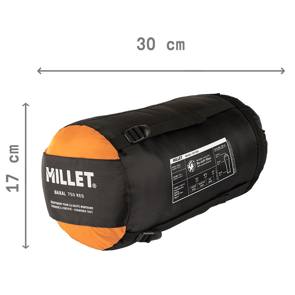 Śpiwór Baikal 750 marki Millet wykonany z włókien syntetycznych do użytku w cieplejszych miesiącach. Jego dużą zaletą jest niewielka waga i dobra składalność, dzięki czemu zmieści się do mniejszego plecaka. Ocieplina z włókien syntetycznych bardzo dobrze radzi sobie z użytkowaniem w deszczu i wilgoci, a przy tym jest łatwa w konserwacji. Śpiwór Millet Baikal zapewni komfortowy sen podczas letniej wędrówki w górach, w czasie jazdy na rowerze, wędrówki wodnej czy spania na kempingu lub w domku.