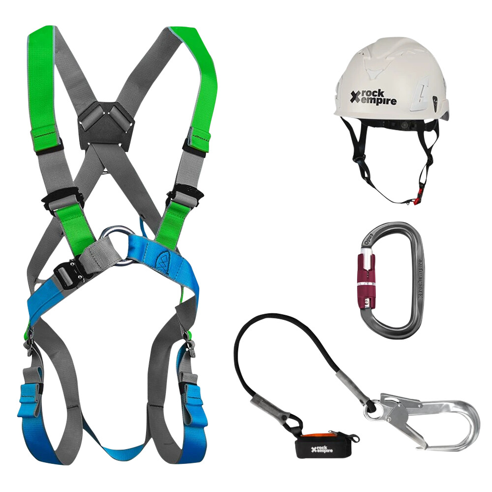 Podstawowy zestaw zabezpieczający Rock Empire zawiera kompletne wyposażenie do przytrzymywania pracowników i zapobiegania upadkom. Idealne rozwiązanie dla pracowników przebywających w środowiskach o podwyższonym ryzyku upadku. Pętla przytrzymująca z absorberem może być przymocowana do przedniego lub tylnego punktu mocowania w zależności od potrzeb.