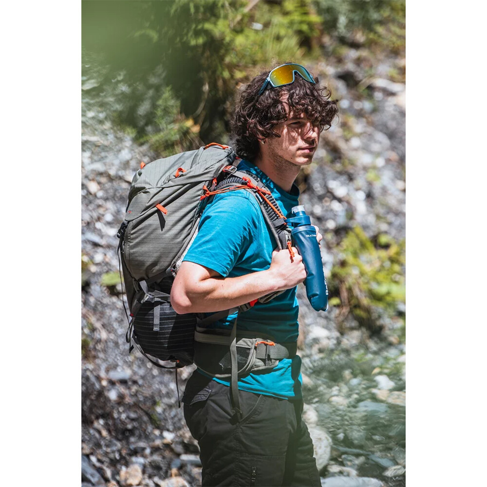 Ultralekki zestaw filtrów Befree AC, odpowiedni na każdą wyprawę w plener. Zawiera miękką, wyciskaną butelkę o pojemności 0,5 l oraz filtr Katadyn. Ten ostatni składa się z dwóch części: filtra z nanowłókien o grubości 0,1 mikrona i filtra węglowego, który nadaje wodzie lepszy smak. Zaletą jest bardzo łatwa obsługa, po nalaniu wody do butelki, włożeniu filtra do środka i zakręceniu szyjki. Następnie można natychmiast wypić wodę, ponieważ filtracja odbywa się poprzez przepływ przez sam filtr. Szeroka szyjka ułatwia pobieranie wody z różnych źródeł, a gdy butelka jest pusta, można ją spakować do małego, kieszonkowego rozmiaru, który prawie nie zajmuje miejsca w plecaku.