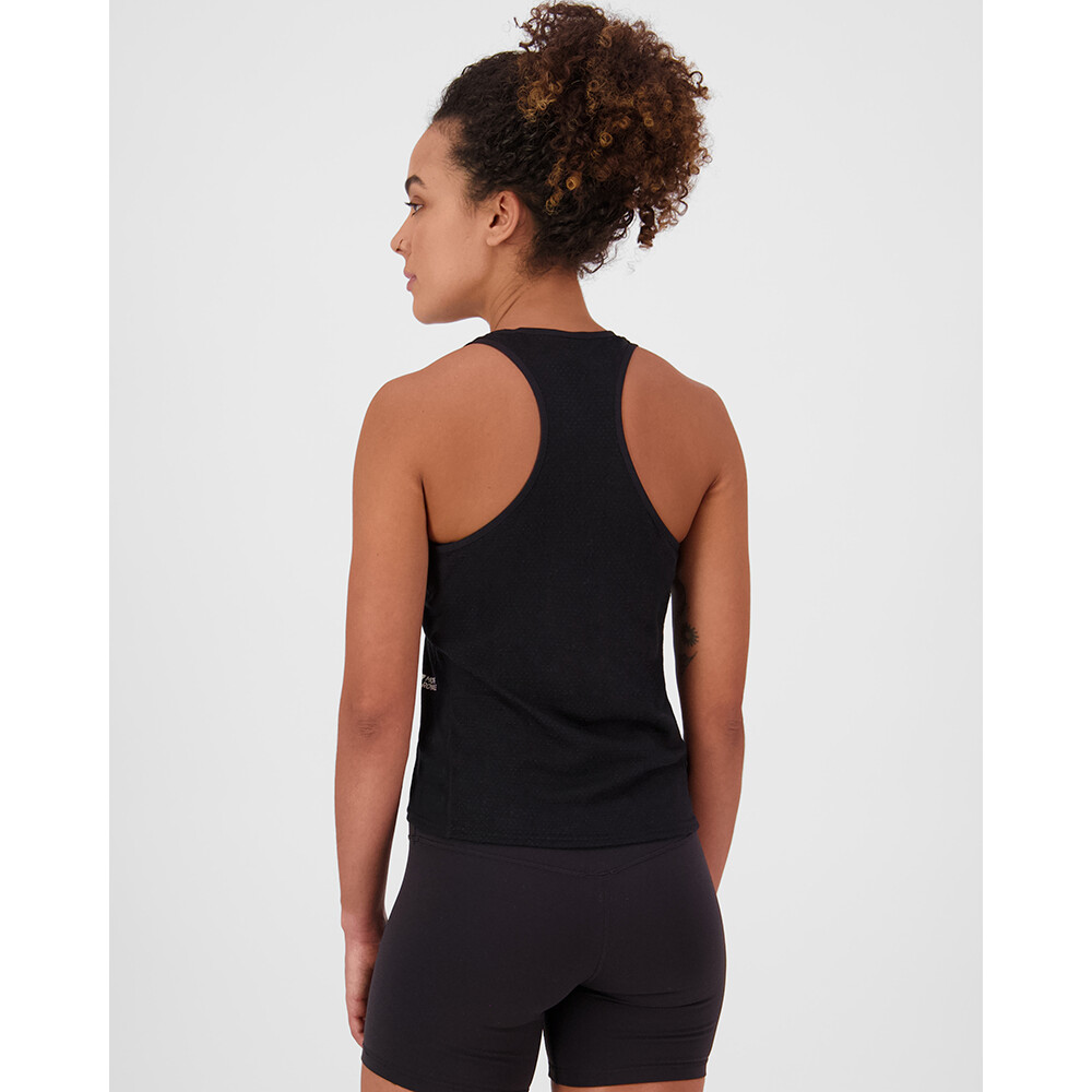 Koszulka Bella Merino Tank Women od Mons Royale ma klasyczny krój "racerback" i wyprofilowane panele boczne, które dostosowują się do każdego ruchu. Oddychający panel z siateczki merino na plecach zwiększa wentylację, a przedłużony panel tylny blokuje zbiornik na miejscu, dzięki czemu nie podwija się nawet podczas dynamicznego ruchu. Pod podkoszulek z merynosów dodaj stanik sportowy z merynosów, uzupełnij lekką bluzą lub wiatrówką, w zależności od pogody.