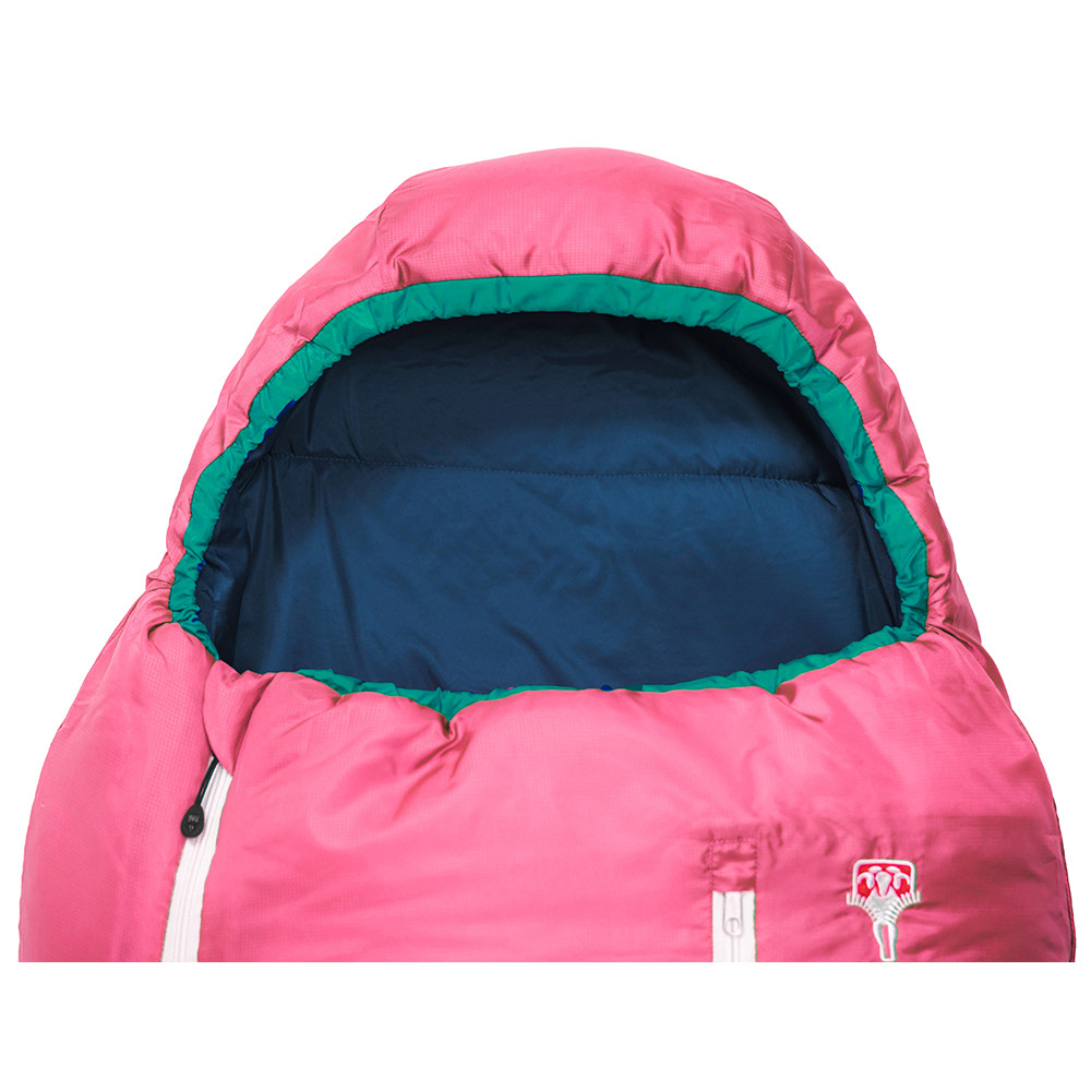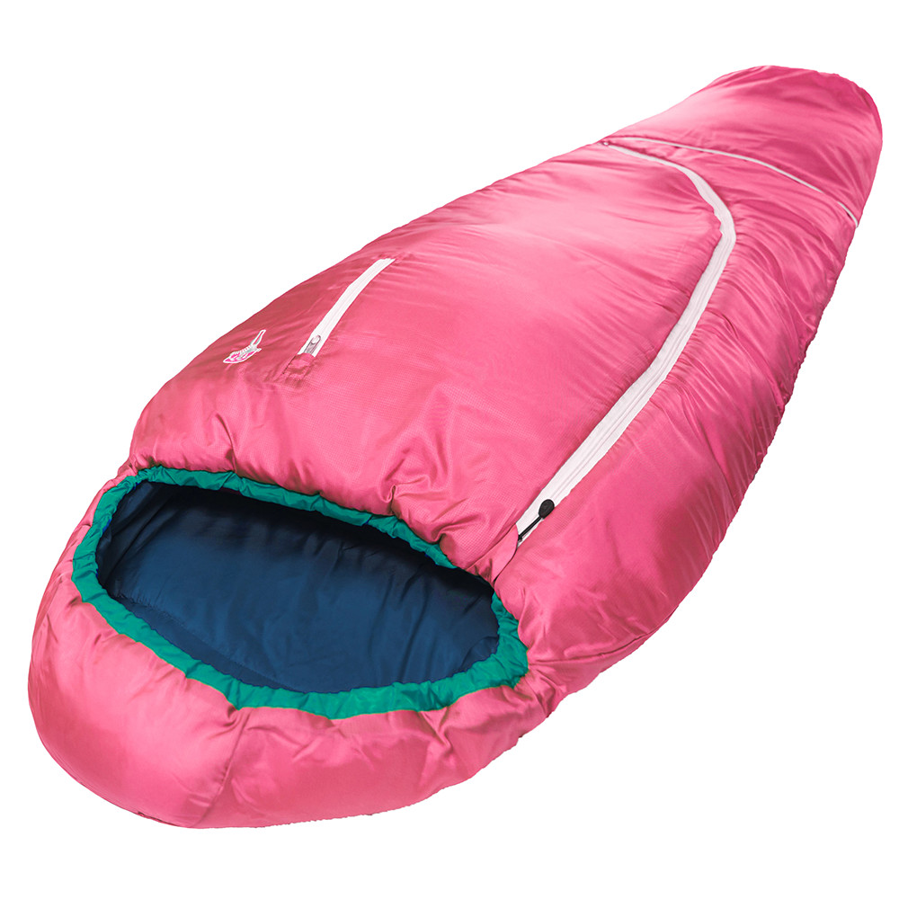 Śpiwór dla dzieci, odpowiedni dla wzrostu od 95 do 130 cm. Można go łatwo przedłużyć, rozpinając u dołu. Posiada ciepłe wypełnienie z mikrofibry, kaptur ściągany sznurkiem i zamki błyskawiczne po obu stronach dla wygodnego wchodzenia.