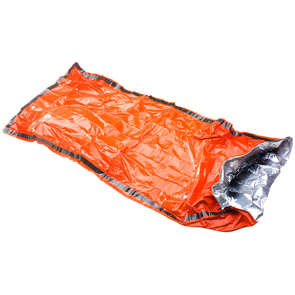 Bivibag UL firmy deuter to ratunkowy wariant jednoosobowego worka bivvy. Wykonany jest z folii termoizolacyjnej, charakteryzuje się bardzo niską wagą i niewielkimi rozmiarami po spakowaniu. Dzięki temu jest idealnym dodatkiem do outdoorowej apteczki i powinna znaleźć swoje miejsce w każdym plecaku na piesze wędrówki, wspinaczkę górską i zimowe wyprawy narciarskie. Zastosowany materiał chroni przed wiatrem i wilgocią, a srebrna warstwa zapobiega utracie temperatury ciała i w konsekwencji hipotermii. Można jej używać jako zewnętrznej ochrony dla śpiwora lub w sytuacji kryzysowej dla rannej osoby.