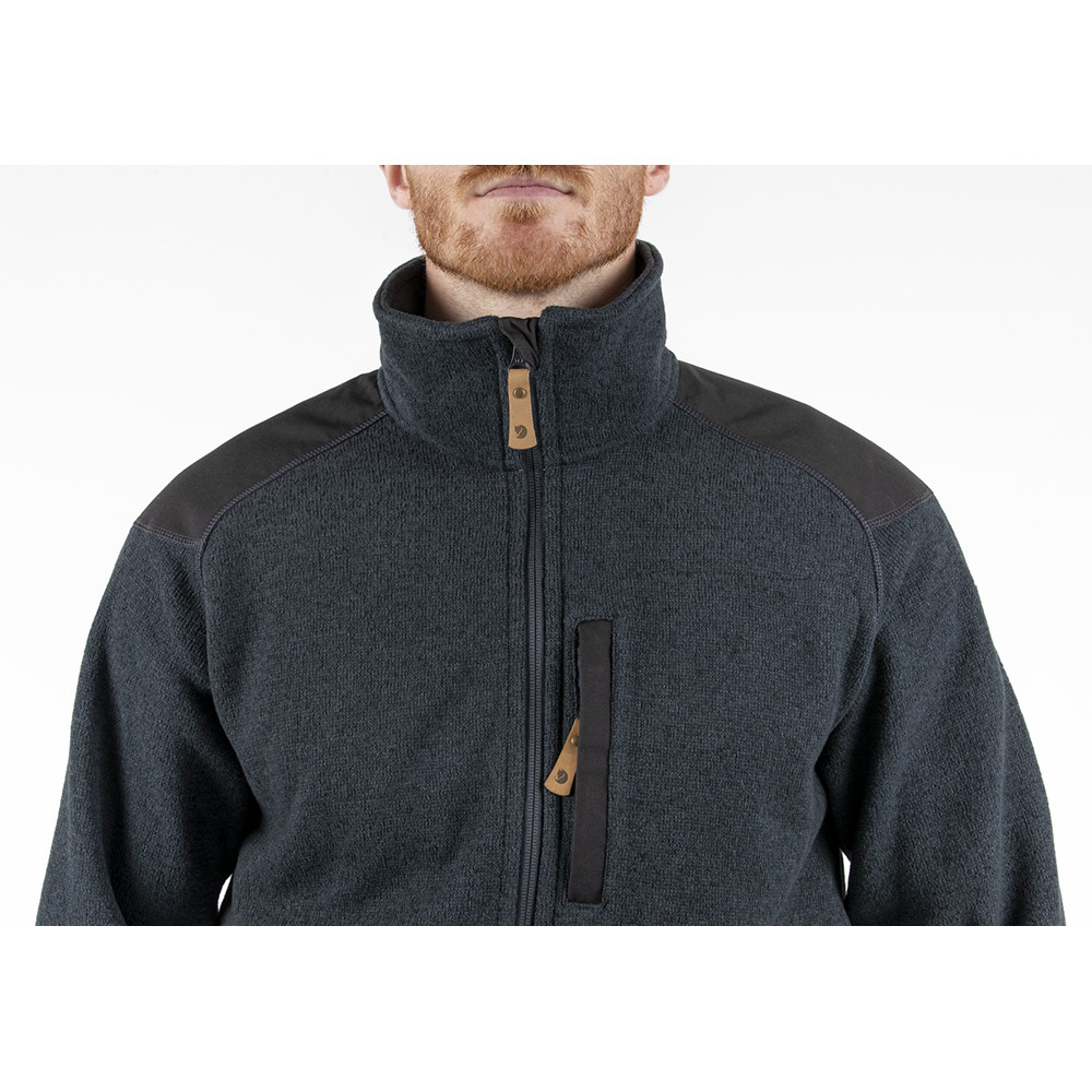 Lekka męska bluza Fjällräven do uprawiania sportu i aktywności na świeżym powietrzu z dwóch różnych materiałów. Kaptur, ramiona i klatka piersiowa są wykonane z ciepłego polaru z miękką szczotkowaną stroną, a pozostałe części z lekkiego polaru z doskonałą wentylacją.