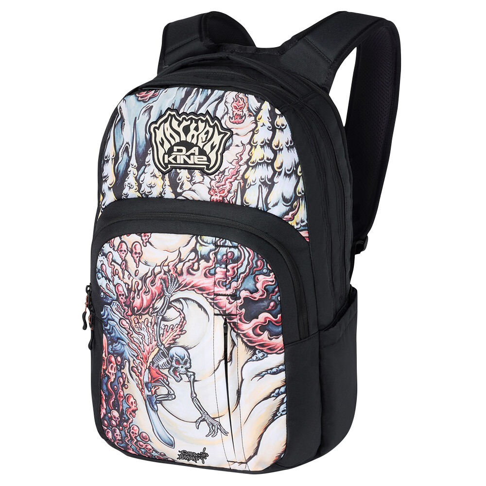 Niezwykły wygląd tego plecaka to efekt współpracy Dakine z legendą surfingu Mattem "Mayhem" Biolosem. Matt jest znanym projektantem wizualizacji desek surfingowych. Plecak łączy w sobie jakość Dakine z charakterystyczną estetyką i wizją projektową Mayhema, motywowaną kulturą surfingu i stylem życia.
