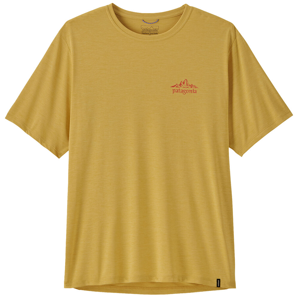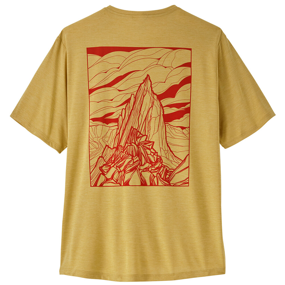 Koszulka Cap Cool Daily Shirt - Cloud Crag Men marki Patagonia to lekka i wszechstronna warstwa funkcjonalna, która dostosowuje się do tempa dnia - niezależnie od tego, czy wybierasz się na szlak, czy podróżujesz. Miękka koszulka wykonana w 100% z poliestru, z którego 50% pochodzi z recyklingu, jest oddychająca, szybko schnie i utrzymuje komfort na ciele nawet przy większych obciążeniach dzięki odprowadzaniu wilgoci. Koszulka z charakterystyczną dla Vernon Klee grafiką Fitz Roy i krótkimi rękawami wygląda świetnie nie tylko podczas trekkingu, ale także jako stylowa warstwa do uprawiania wielu sportów.