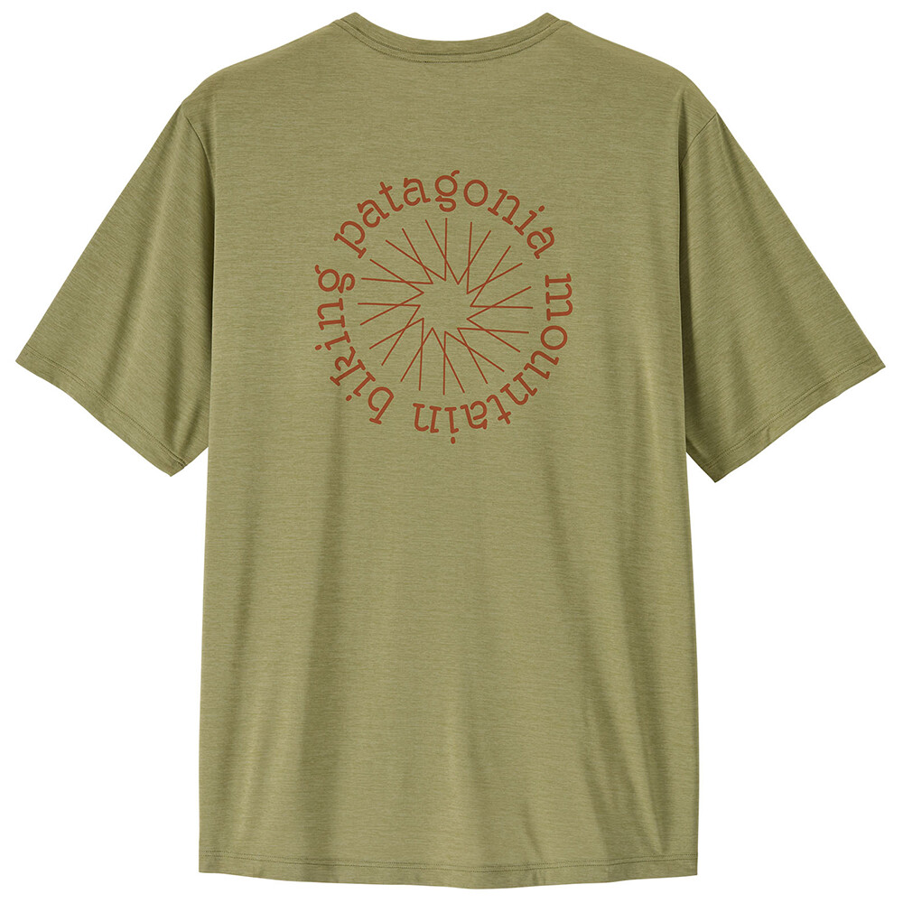 Koszulka Cap Cool Daily Shirt - Spoke Stencil Men marki Patagonia to lekka i wszechstronna warstwa funkcjonalna, która dostosowuje się do tempa dnia - niezależnie od tego, czy wybierasz się na szlak, czy podróżujesz. Miękka koszulka wykonana w 100% z poliestru, z którego 50% pochodzi z recyklingu, jest oddychająca, szybko schnie i utrzymuje komfort na ciele nawet przy większych obciążeniach dzięki odprowadzaniu wilgoci. Dzięki ciekawej grafice roweru górskiego i krótkim rękawom koszulka wygląda świetnie nie tylko podczas jazdy, ale także jako stylowa warstwa funkcjonalna na co dzień.
