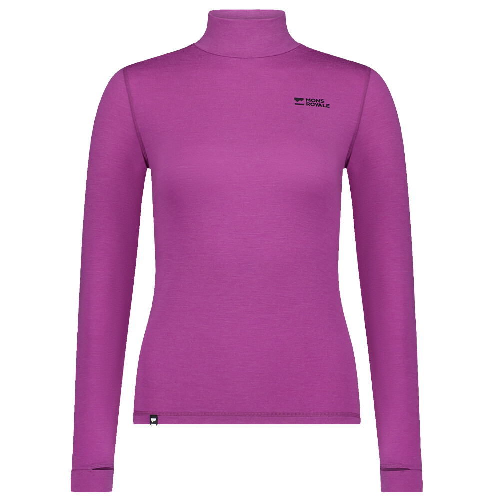 Damska koszulka z długim rękawem Cascade Merino Flex 200 Mock Neck marki Mons Royale to wygodna warstwa bazowa, która porusza się razem z Tobą. Dzięki czterokierunkowej rozciągliwości i wełnie merynosów zapewnia wygodę podczas każdej aktywności - niezależnie od tego, czy jeździsz na nartach , wędrujesz po górach, czy po prostu jeździsz po mieście.