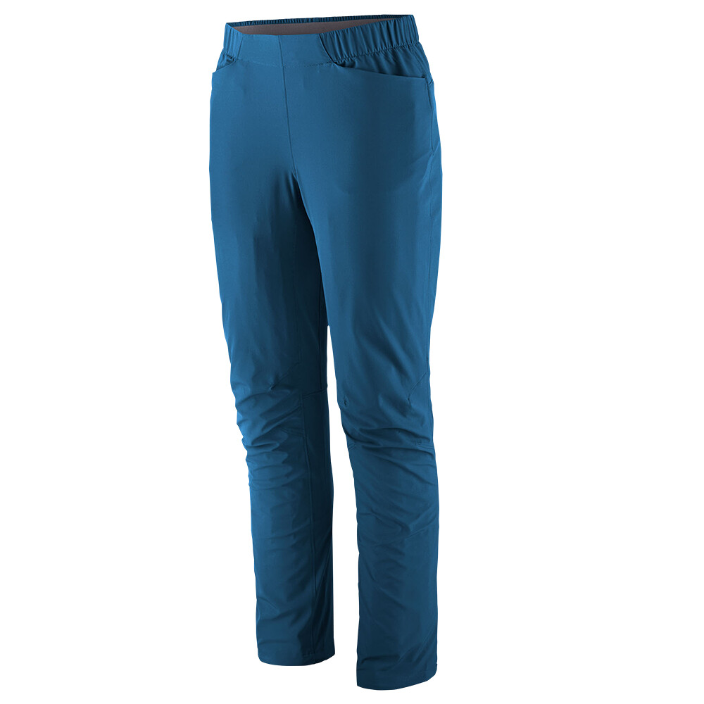 Najlżejsze spodnie Patagonia Chambeau Rock Pants z kolekcji wspinaczkowej dla wszystkich dziewczyn, które uwielbiają długie trawersy górskich grani, wielowyciągowe wspinaczki skałkowe lub letnie wspinaczki. Spodnie zostały zaprojektowane z myślą o całodziennej maksymalnej mobilności i komforcie. Niskoprofilowy, miękki, elastyczny pas z gładkim przodem zwiększa wygodę. Przednie i tylne kieszenie są łatwo dostępne nawet przy założonym siodełku. Bezpieczna, zapinana na zamek kieszeń na prawym udzie jest skutecznie umieszczona nad kolanem i poniżej pętli uprzęży. Na końcu zwężanych nogawek znajdują się mankiety, które można regulować za pomocą elastycznych wiązań.