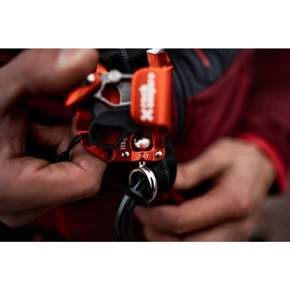 Chest UP to lekki, kompaktowy bloczek przeznaczony do profesjonalnego użytku w systemach dostępu linowego. UNIKALNA OBROTOWA OBROTNICA zapewnia optymalną pozycję bloczka w stosunku do obciążanej liny, redukując opory tarcia do minimum.