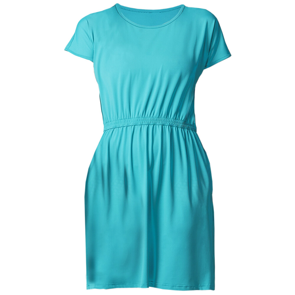 Lekka letnia sukienka wykonana z wysoce elastycznego materiału. Ulepszona tkanina z technologią Omni-SHIELD™ odpycha wodę i plamy. Posiada ściągacz w pasie i kieszenie na dłonie.