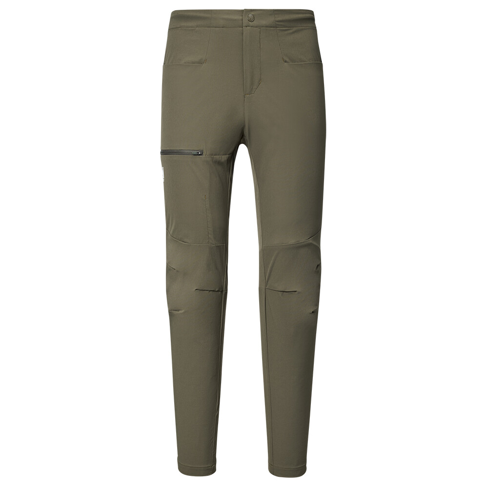 Krój marchewki ze zwężanymi nogawkami zapewnia płynne przejście między ruchami i nie ogranicza podczas technicznych przejść. Wytrzymały, wodoodporny materiał wykonany z częściowo przetworzonego poliamidu z domieszką elastanu zapewnia zarówno elastyczność, jak i trwałość. Płaski pas ze sznurkiem jest w pełni kompatybilny z uprzężami wspinaczkowymi, a spodnie są uzupełnione czterema poręcznymi kieszeniami, w tym zapinaną na zamek kieszenią na udzie do bezpiecznego przechowywania małych przedmiotów.