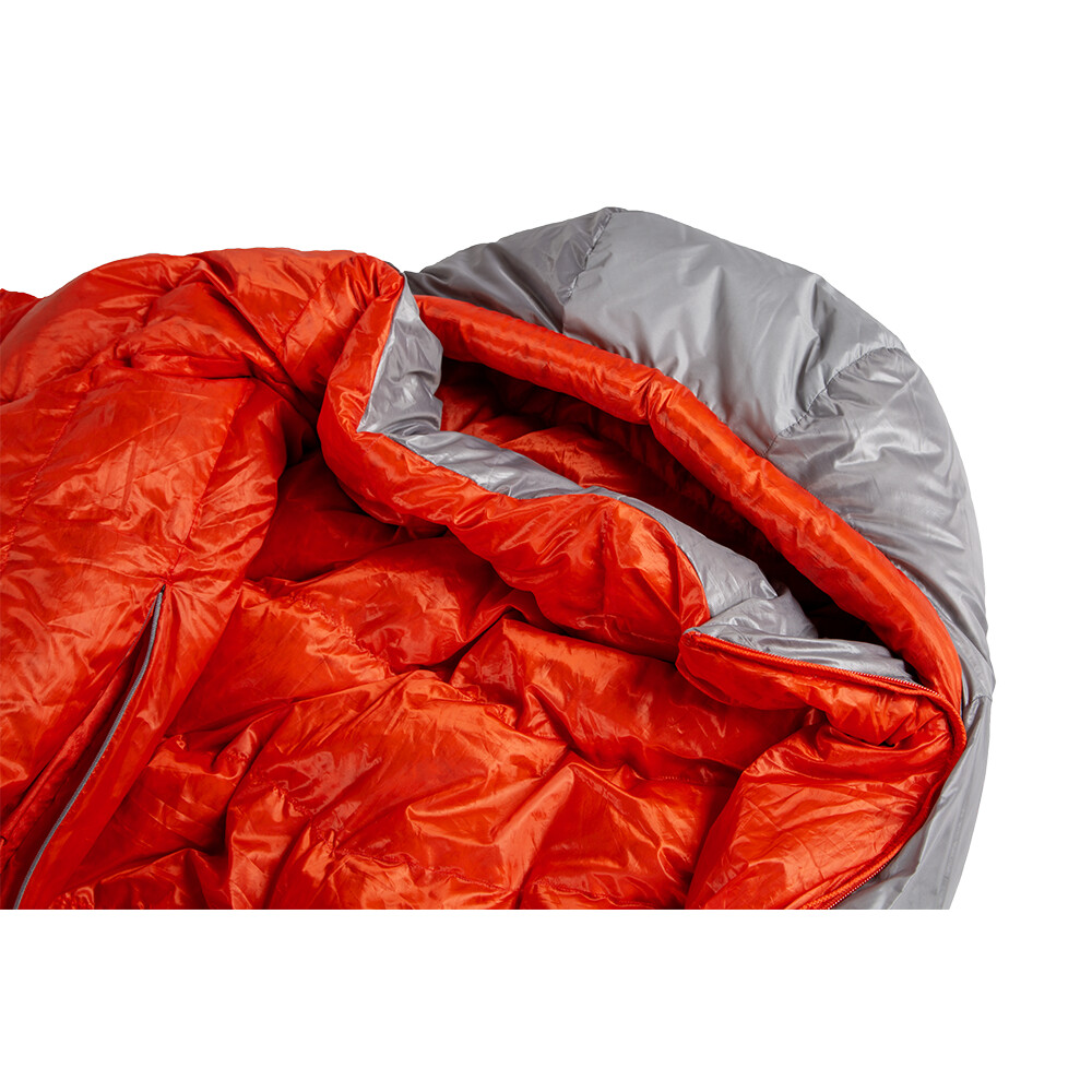 Puchowy śpiwór do użytku przez trzy sezony. Jego specjalny kształt jest maksymalnie dostosowany do spania na boku. Posiada dwa zapinane na zamek otwory wentylacyjne i szeroki zewnętrzny kołnierz, który można obrócić do wewnątrz, aby uzyskać jeszcze więcej ciepła.