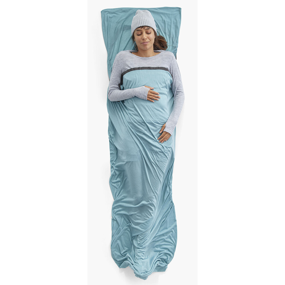 Comfort Blend Liner od Sea To Summit to wkładka do śpiwora, która jest odpowiednia dla wszystkich podróżników jako higieniczna ochrona podczas spania w schroniskach górskich i schroniskach.Wykonana jest z lekkiego poliestru i naturalnego włókna Tencel, dzięki czemu w dotyku przypomina klasyczną pościel. W upalne dni można jej używać zamiast śpiwora, na przykład podczas spania w hamaku. Jest częściowo wykonany z surowców pochodzących z recyklingu.