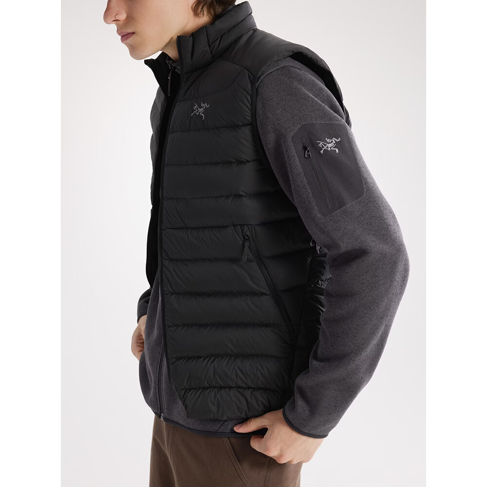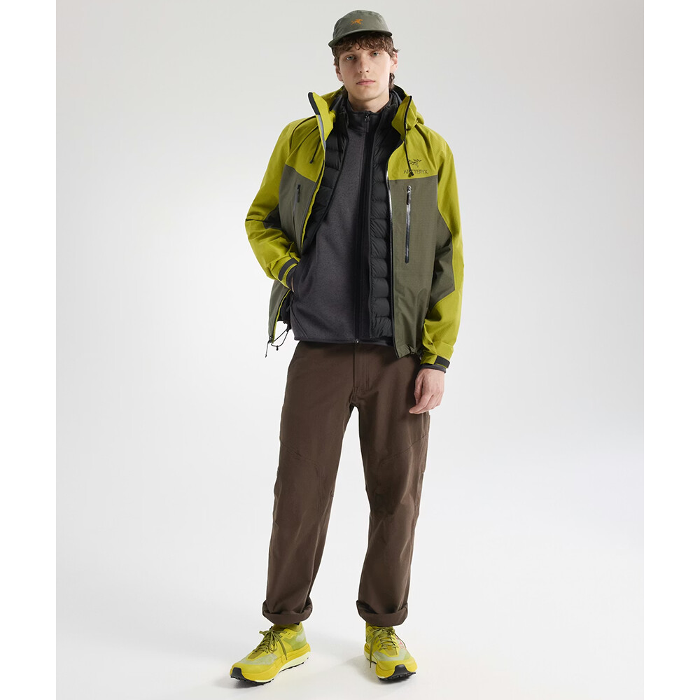 Materiał Alpenex z recyklingu jest ciepły, miękki i odporny na ścieranie. Jest odporny na marszczenie i ścieranie, na przykład z plecaka. Posiada laminowaną kieszeń na suwak na rękawie z logo Arc´teryx, a przednie kieszenie na suwak zapewniają ciepło dłoniom.