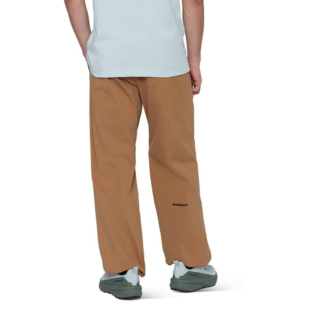 Wyrafinowany luźny krój wspinaczkowy z klinem w kroku doskonale uzupełnia elastyczną dzianinę z bawełny organicznej z domieszką elastanu. Elastyczny pas jest szybko zabezpieczony sznurkiem. Końce nogawek można również regulować w ten sposób. Trzy kieszenie, dwie z przodu i jedna z tyłu, zostaną docenione zarówno na szlaku boulderowym, jak i w mieście. Uzupełnij te spodnie stylową koszulką Mammut, załóż buty wspinaczkowe i ruszaj pokonywać nowe trudności!
