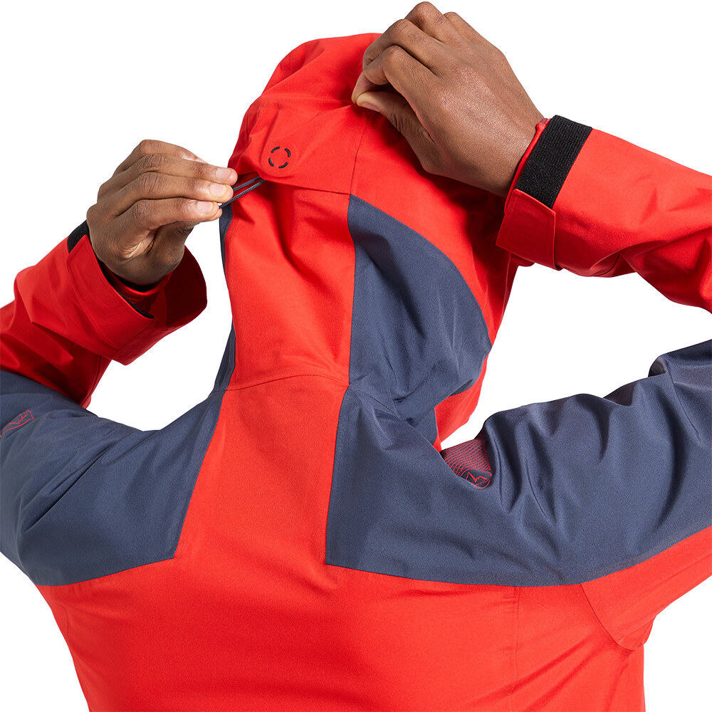W pełni regulowany kaptur z wysokim kołnierzem dobrze chroni głowę i szyję. Jest kompatybilny z kaskiem i nie ogranicza pola widzenia. Rękawy i dół są ściągane sznurkiem i nie wywiewają wilgoci. Kurtka ma wyrafinowany krój, który nie ogranicza ruchów. Dół kurtki nie podwija się nawet po podniesieniu rąk do góry. Główny zamek błyskawiczny jest dwukierunkowy. Kurtka ma cztery kieszenie, dwie zewnętrzne i dwie wewnętrzne. Dodaj wygodną warstwę pośred nią i ruszaj na stok!