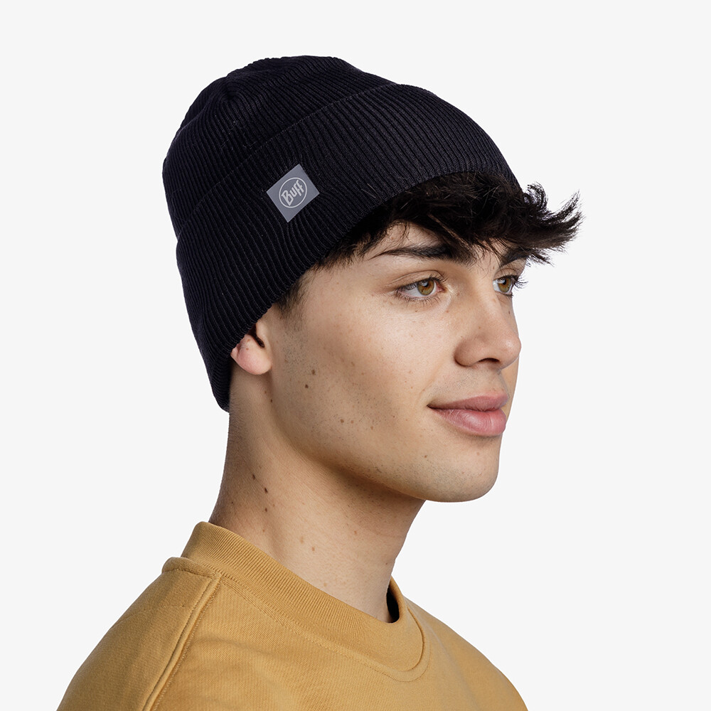 Czapka Crossknit Beanie marki Buff może być noszona z dżinsami w mieście lub na treningu.