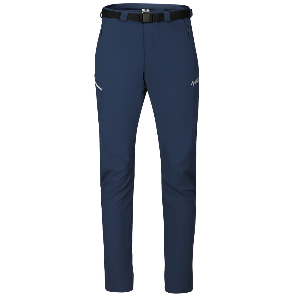 Wiatroszczelny materiał. Precyzyjny, wygodny i anatomiczny krój doskonale dopasowuje się do ciała. Wygodna talia jest regulowana za pomocą paska z klamrą, dzięki czemu idealnie pasuje do każdego typu ciała. Dwie przednie kieszenie na suwak i jedna boczna kieszeń na suwak pomieszczą wszystko, co potrzebujesz mieć pod ręką. Spodnie mają wyprofilowane kolana dla idealnego ruchu.