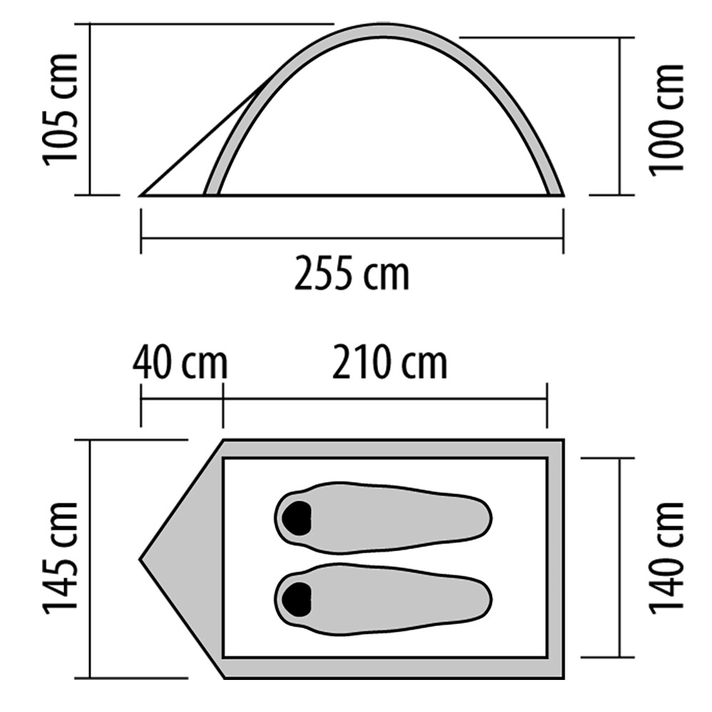 Przestronny namiot rodzinny o konstrukcji tunelowej, z dwiema oddzielnymi sypialniami, razem dla czterech osób. Wysokość wnętrza wynosi 200 cm, duży korytarz pozwala na umieszczenie mebli kempingowych lub rowerów.