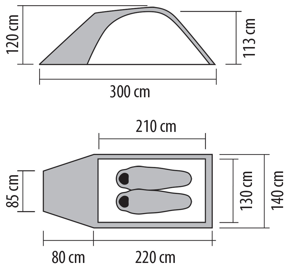 Przestronny namiot dla czterech osób. Posiada dwie oddzielne sypialnie i dwa wejścia w środkowej części. Można je otworzyć jako markizę. Zintegrowana podłoga skutecznie zapobiega przedostawaniu się wilgoci, brudu i owadów.