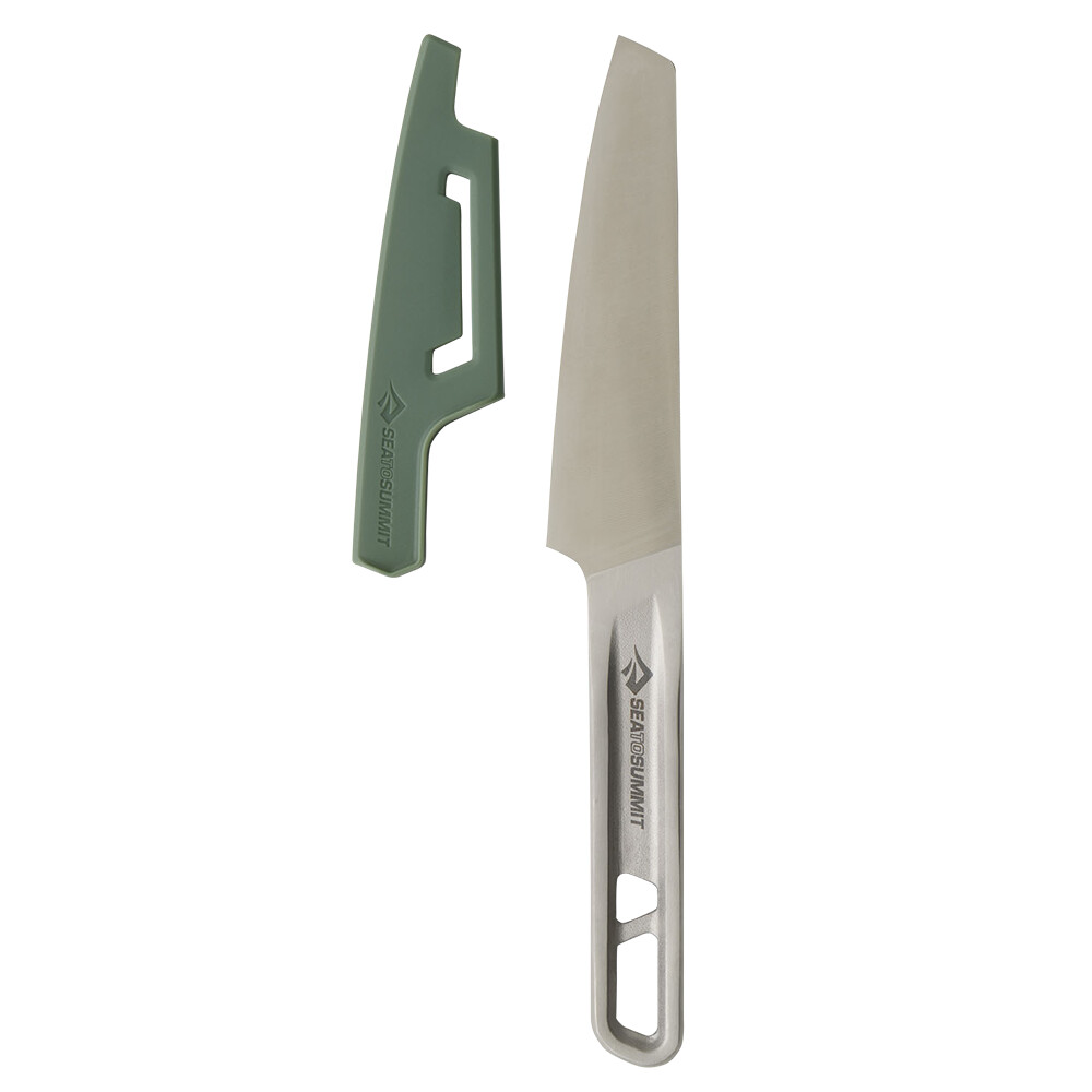 Nóż do krojenia od Sea To Summit jest idealny do kuchni kempingowej. Wykonany jest ze stali nierdzewnej i doskonale sprawdzi się podczas krojenia i obierania owoców, warzyw, mięsa i innych produktów spożywczych. W zestawie znajduje się silikonowa osłona na ostrze, dzięki czemu można go bez obaw spakować do plecaka lub torby podróżnej.