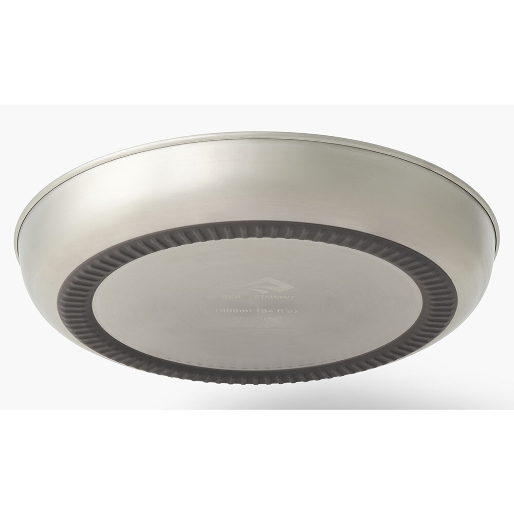 Talerz podróżny firmy Sea To Summit z serii naczyń ze stali nierdzewnej Detour. Jest to idealny dodatek do kuchni kempingowej. Nadaje się do zup i drugich posiłków, jest łatwy do czyszczenia, a dzięki silikonowej podstawie dobrze trzyma się nawet na gładkiej powierzchni stołu kempingowego.