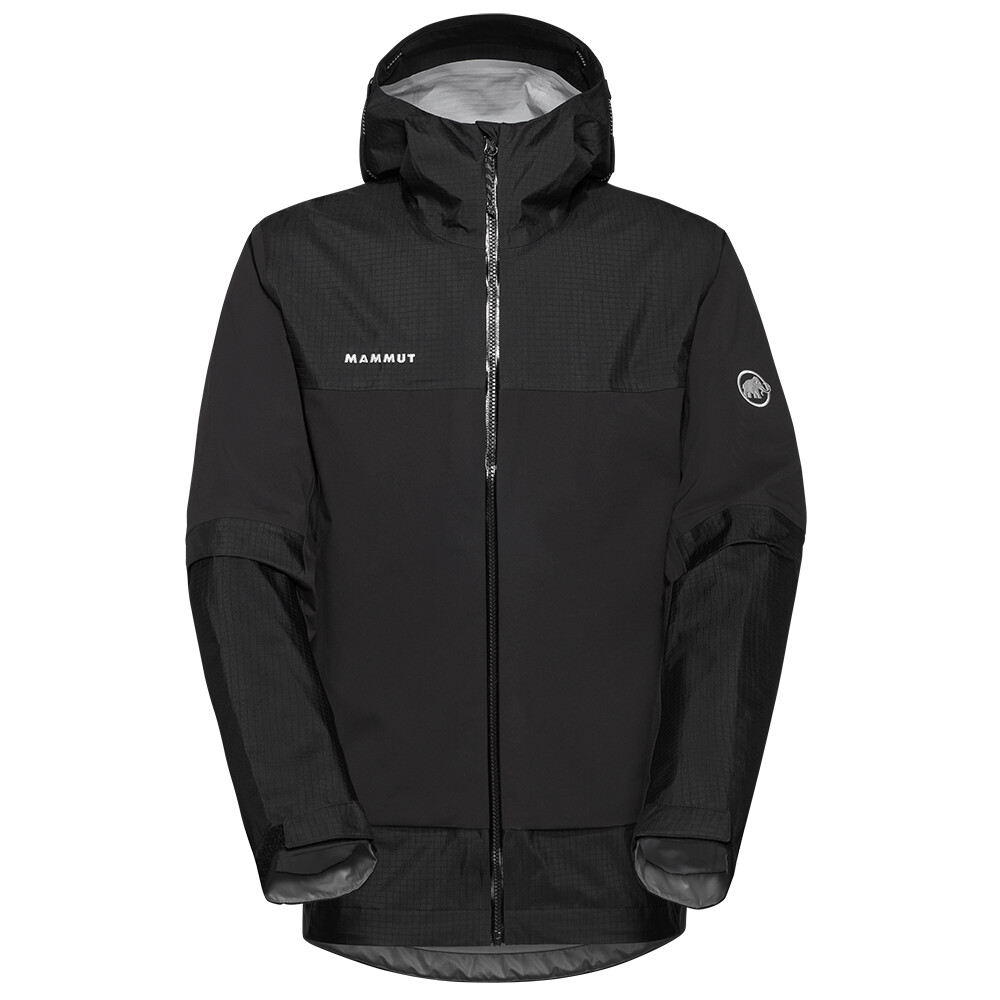 Kurtka jest wykonana z trójwarstwowego materiału DRY Tour firmy Mammut. Dzięki temu jest wodoodporna, oddychająca i wiatroszczelna. Wentylacja na zamek błyskawiczny pod pachami umożliwia regulację temperatury podczas wzmożonej aktywności fizycznej. Regulowany kaptur idealnie dopasowuje się do sylwetki. Wstępnie ukształtowane rękawy są uzupełnione praktycznymi regulowanymi mankietami. Dwie kieszenie zapinane na suwak pozwalają mieć pod ręką niezbędne drobiazgi. Wewnętrzna kieszeń ma większy rozmiar. Szwy na ramionach są umieszczone tak, aby nie przeszkadzały podczas noszenia plecaka. Dolny dół jest regulowany. Oczywiście jest wodoodporny zamek błyskawiczny.